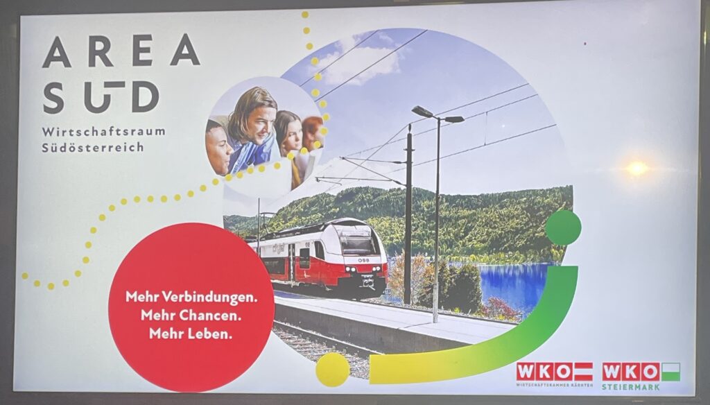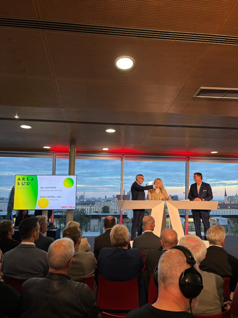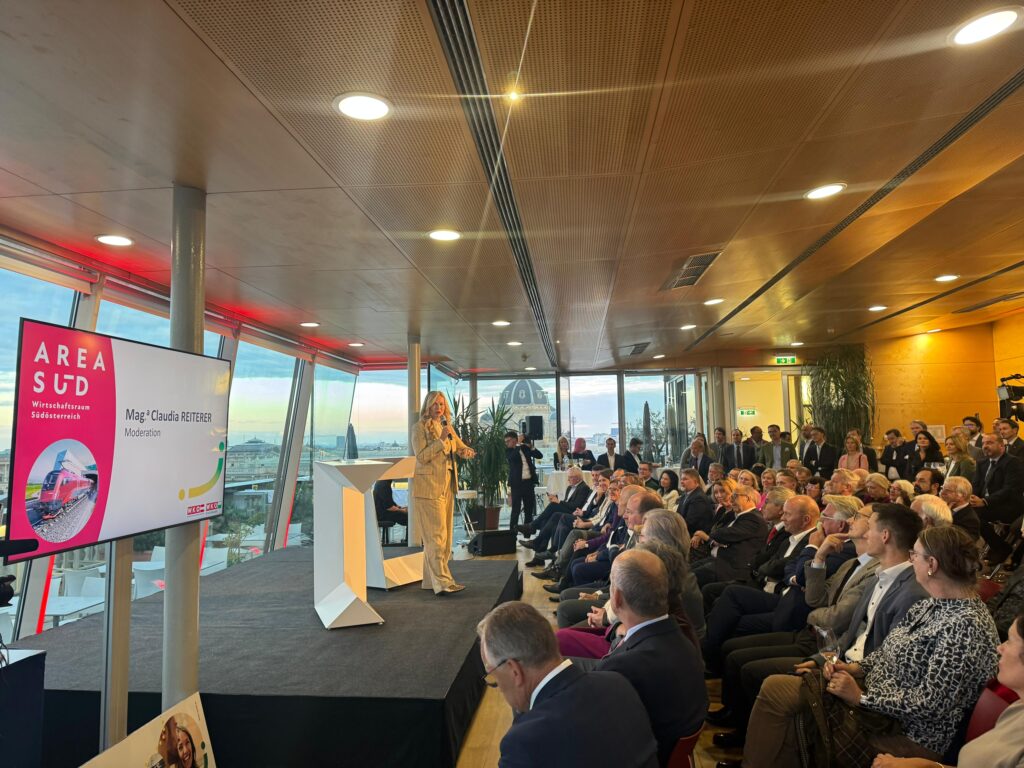Am Montag, 29. September 2025 wurde über den Dächern Wiens die „Area Süd“ präsentiert. Es ist die neue Dachmarke der Wirtschaftskammern Steiermark und Kärnten für den gemeinsamen Wirtschaftsraum, die anlässlich der Eröffnung der neuen Koralmbahn-Strecke geschaffen wurde.